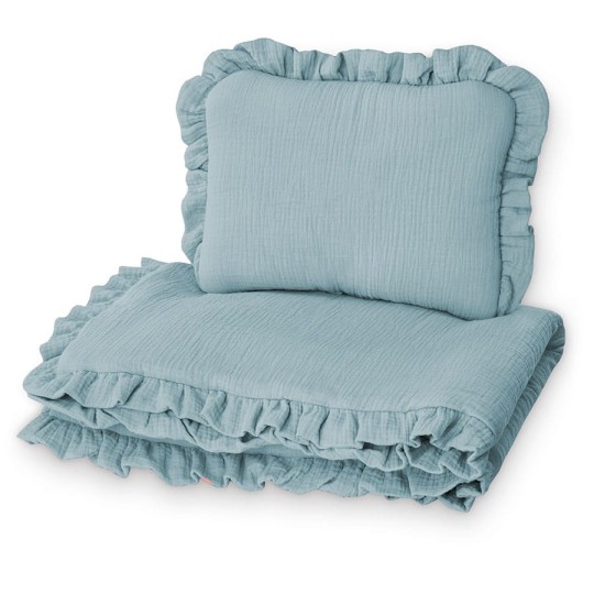 Zum Set gehört ein flaches Schutzkissen, das Feuchtigkeit effektiv absorbiert und extrem weich ist, damit Ihr Baby sicher schlafen kann. Das Set enthält außerdem eine Bettdecke mit den Maßen 75x100 cm, die sowohl im Kinderbett als auch im Kinderwagen oder in der Wiege verwendet werden kann und Ihrem Baby in jeder Situation Komfort und Wärme bietet.