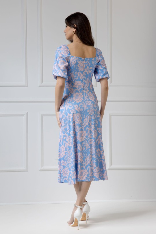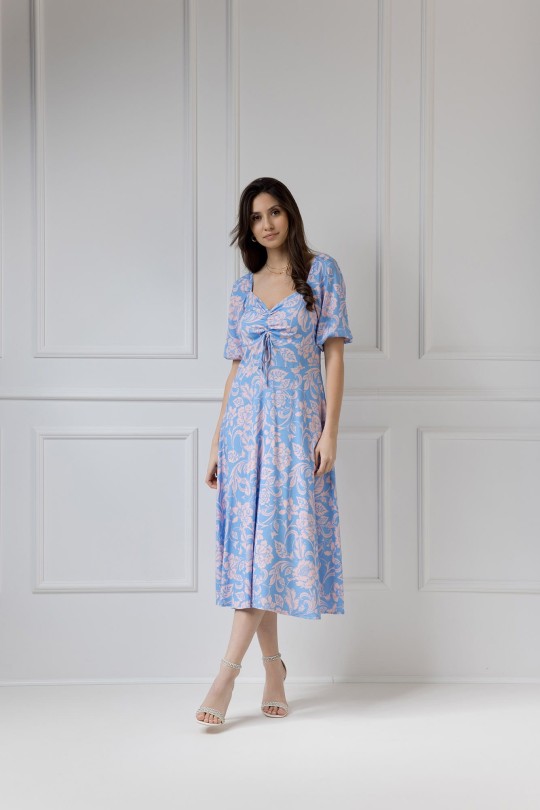 Midikleid Chloe Rustic Symphony Blue/Apricot - WUALAA Women