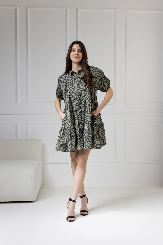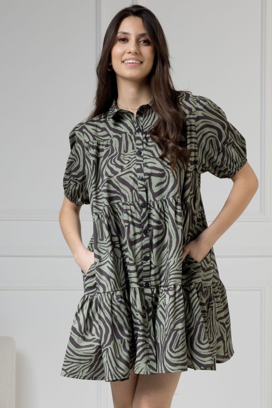 Kleid Cindy Zebra Khaki - WUALAA Women