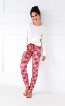 Ergänzt wird das Set durch eine lange karierte Hose mit einer Satinschleife in der Taille. Die Bündchen an den Ärmeln und Beinen sind mit einem gerippten Saum versehen, der für einen noch besseren Sitz und Komfort sorgt.