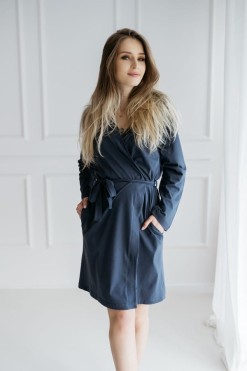 Das Modell "Ciara" hat lange Ärmel, reicht bis zum Knie und hat praktische Taschen. In der Taille wird er mit einem Baumwollgürtel gebunden. Es bietet Komfort und Bewegungsfreiheit. Ein unverzichtbares Stück für die Garderobe jeder Frau.