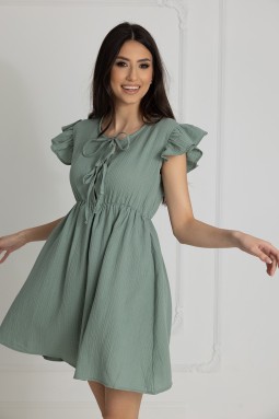 Nachthemd aus Baumwoll-Musselin zum Stillen Salome / Lorbeergrün - Dolce Sonno