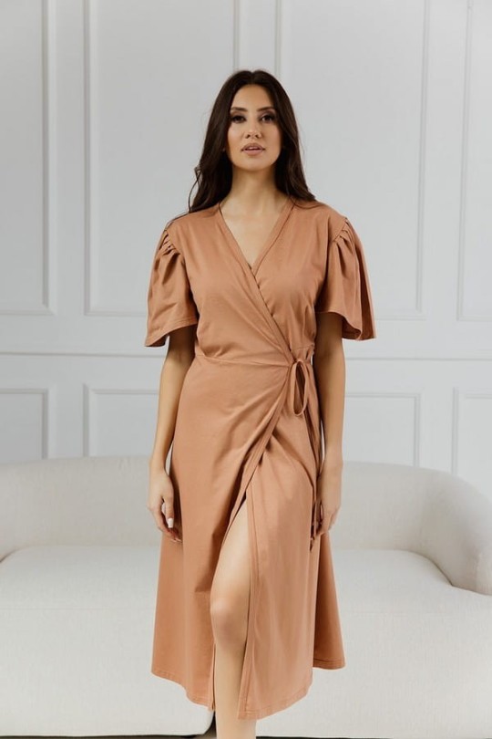 Langes Umstandsnachthemd und Stillnachthemd Milano/ Caramel - Dolce Sonno