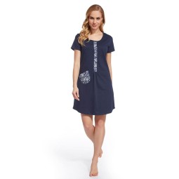 Umstands- und Stillnachthemd mit kurzen Ärmeln und Druckknopf-Ausschnitt Flora Dunkelblau | Dolce Sonno