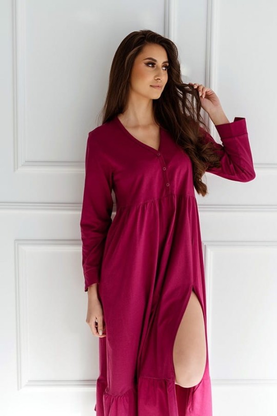 Langes Damen-Nachthemd aus 100% zertifizierter Premium-Baumwolle. Das Ina Shirt hat einen sehr femininen Schnitt, sein unterer Teil ist mit einer charmanten Rüsche und einem sinnlichen Schlitz am Oberschenkel verziert. Es schmiegt sich wunderbar an die Silhouette und verleiht jeder Frau Charme.