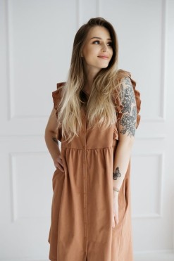 Still-Nachthemd aus Baumwolle mit praktischen Taschen. Der Kleidungsschnitt und die dekorativen Rüschen an den Schultern verleihen dem Hemd eine lässige, romantische Note. Es kann sowohl im Bett als auch tagsüber als Homewear getragen werden!