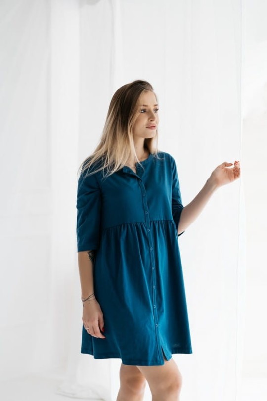Das Nachthemd "Paris" hat 3/4-Ärmel und lässt sich mit sicheren, nickelfreien Druckknöpfen ganz öffnen. Das macht das Stillen in jeder Position einfach und gewährleistet gleichzeitig 100%ige Diskretion.